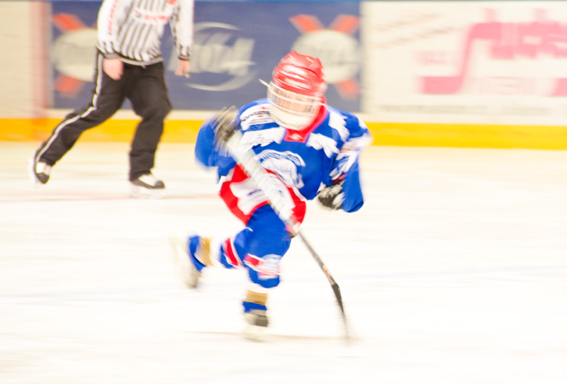 L’exercice fut corsé. Ils ont beau être petits ces gamins, il faut les voir voltiger sur la glace, tricoter sur leur lame et démarrer en trombe à l’assaut des buts. Et en plus, ils n’arrêtent pas de s’agglutiner sur le puck. Comment voulez-vous composer des photos cohérentes dans une telle pagaille, avec en prime des panneaux publicitaires qui garantissent des fonds bien bariolés???