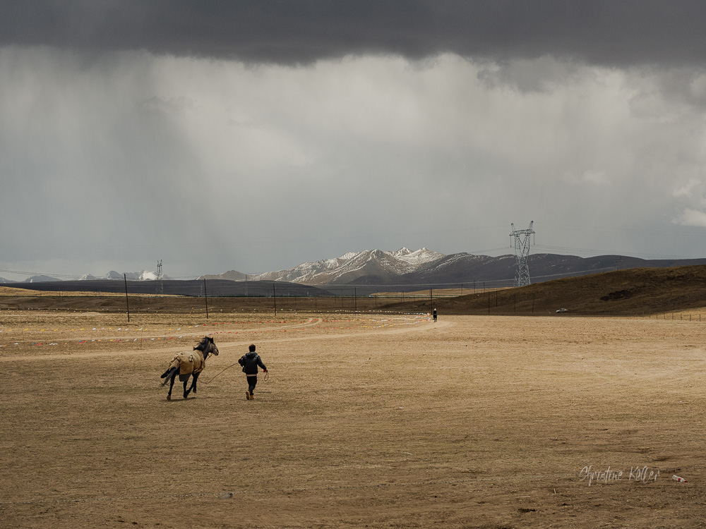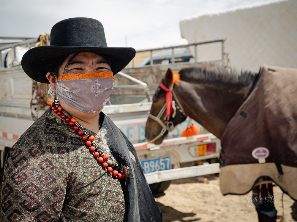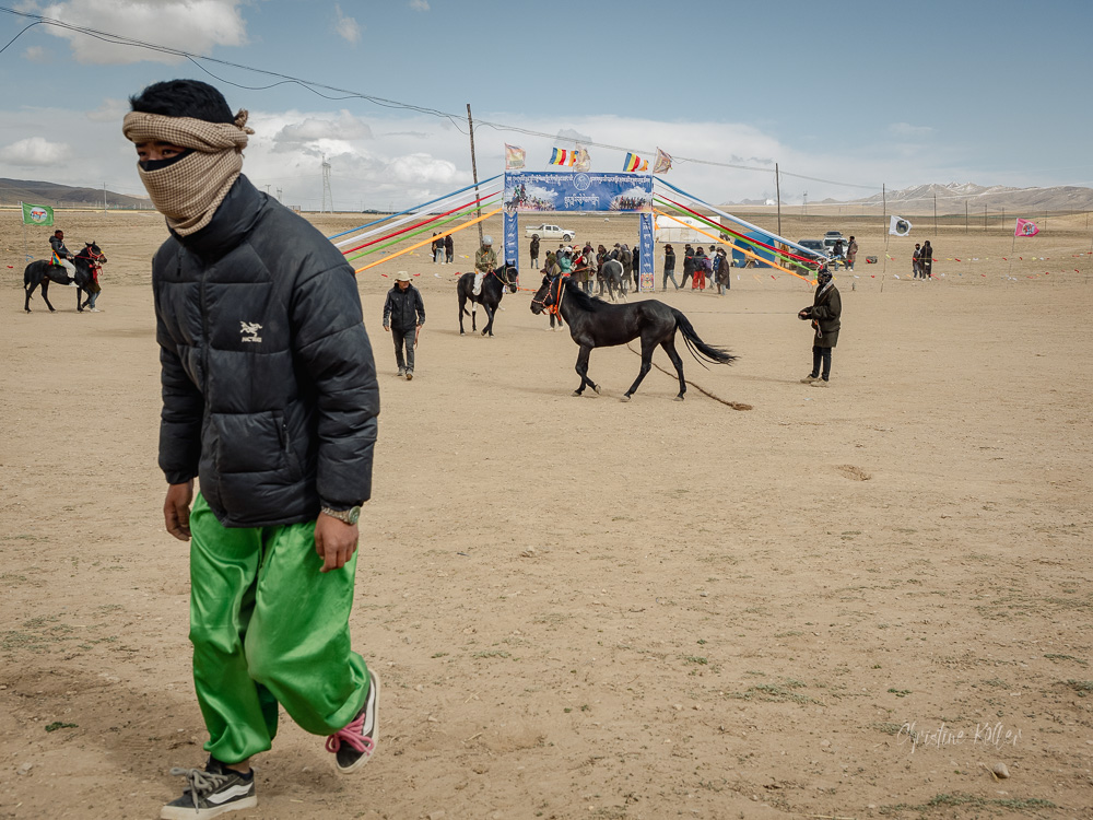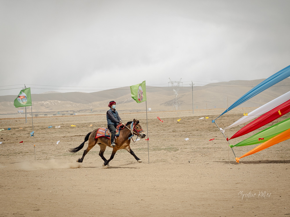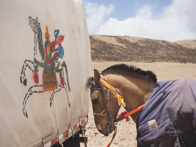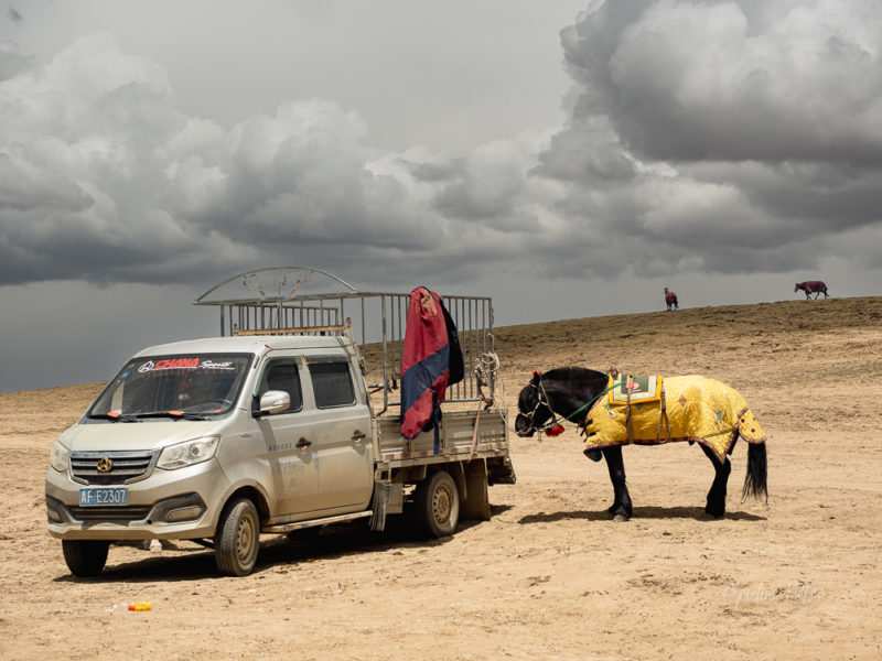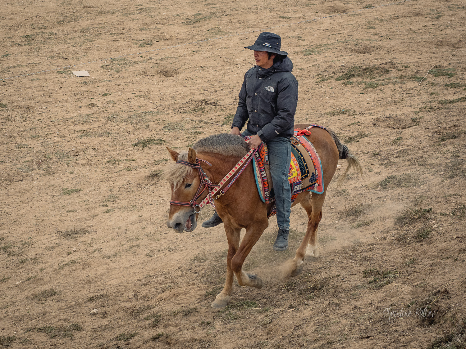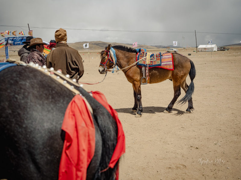 Les chevaux que j’ai pu observer lors de cette manifestation présentent toutes les caractéristiques des chevaux du plateau — une silhouette compacte, une encolure épaisse, une démarche sûre — et rappellent aussi beaucoup les chevaux mongols. Difficile toutefois d’affirmer qu’il s’agit précisément d’un cheval de Yushu : les variations locales sont nombreuses et les distinctions peu évidentes sur le terrain.