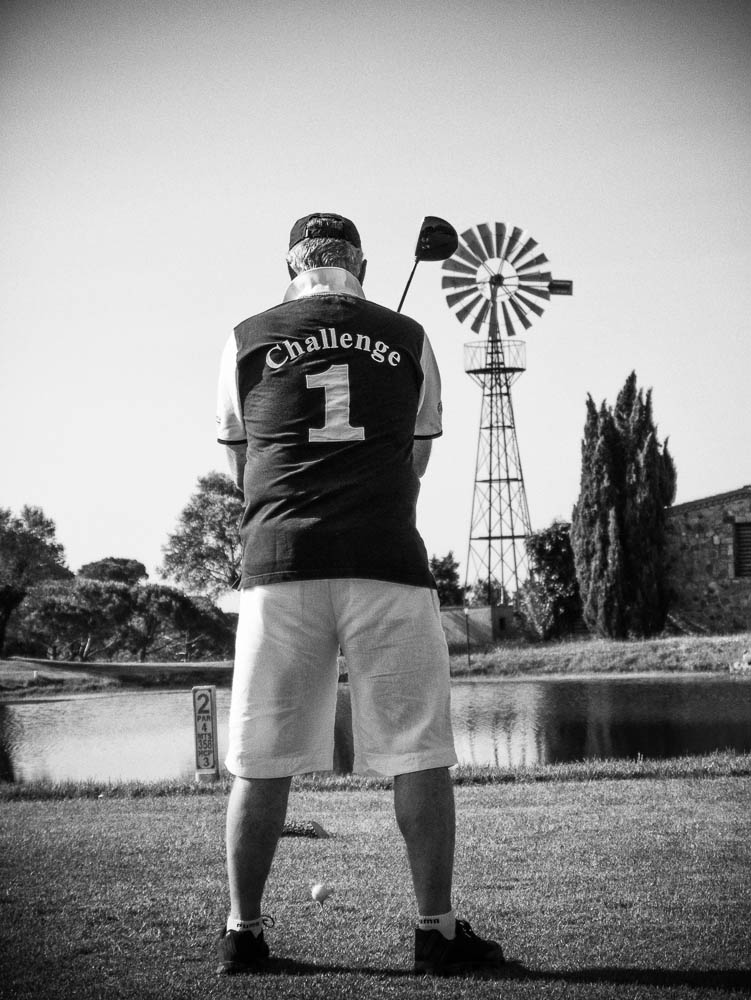 Il n’y a rien à faire, je ne sais pas taper la balle. Oh ce n’est pas faute d’avoir essayé mais vraiment le golf n’est compatible ni avec mon caractère, ni avec mon emploi du temps, au grand désespoir de mon Romand préféré qui aimerait tant que je l’accompagne sur les greens. Si d’habitude je le laisse arpenter seul les gazons de la région, la perspective d’un petit week-end entre amis sous le soleil catalan à la fin juin ne m’a pas fait hésiter une seconde. Quand bien même je ne partage pas cette passion, un avant-goût de vacances ne se refuse pas. Après 8h. de route (pfff. c’est loin l’Espagne en voiture!) et une bonne nuit de sommeil, toute l’équipe s’est retrouvée au petit matin pour un 18 trous. Bien décidée à ne pas passer ma vie journée à l’attendre, je me la suis jouée groupie du ou plutôt des golfistes, m’autoproclamant photographe officielle des artistes en bermuda. La tâche ne fut pas aussi aisée que je l’imaginais. Avant toute chose, j’ai eu droit à un cours d’étiquette. Oui Madâââme, il est strictement interdit de prononcer le moindre mot lorsqu’un joueur se concentre. Il n’est pas question non plus de se placer où bon vous semble (facile pour prendre des photos…). Nadine de Rotschild c’est de la rigolade à côté! Et que dire de l’étrange baragouin adopté par toute personne normalement constituée dès qu’elle se retrouve sur un parcours. Non les birdies ne sont pas des petits oiseaux, non on ne dit pas canne mais club et parfois le club est un bois, à moins qu’il ne soit un fer, un wedge ou un putter…. Bref, pendant 4h.30 (ah oui, c’est long un parcours de 18 trous! ) j’ai tenu ma langue, je me suis tenue à carreau et j’ai fait essayé de faire des photos.