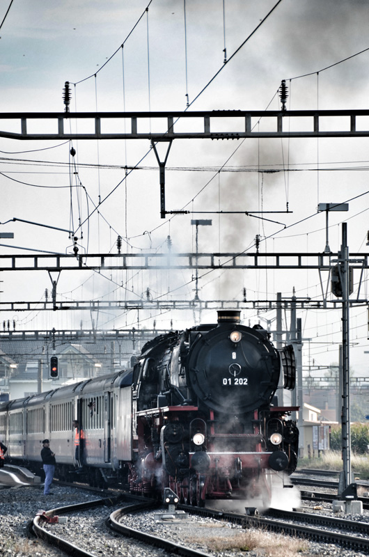 La locomotive, une « Verein Pacific 01 202 » de construction allemande mise en service en 1937, est arrivée en Suisse en 1975. Les travaux de révision de cette machine ont duré au total 18 ans!
