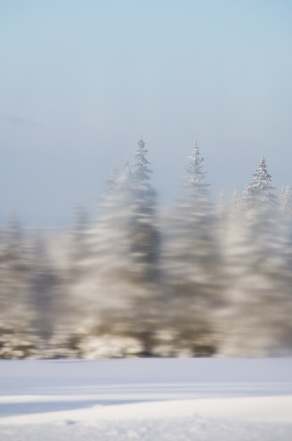 J’aime bien la photo de l’année dernière à travers la vitre. Elle donne l’impression d’un flou de filé paradoxal puisque la cime des arbres est nette. Par contre, je dois avouer que dans les 2 premières photos je suis gênée par le « cramage » excessif du blanc de la glace.
