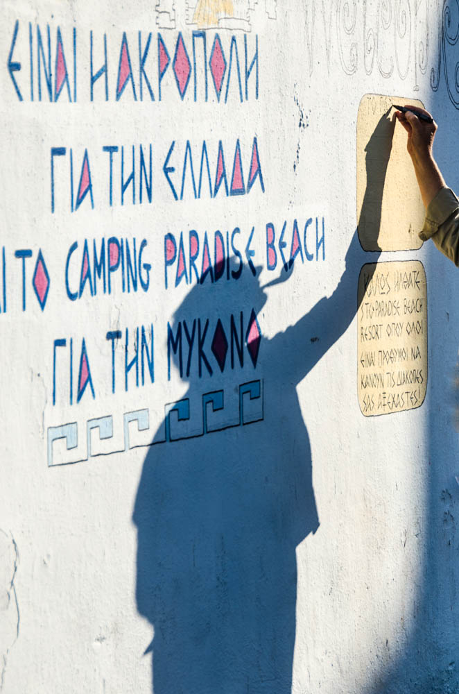 Oh ma cocotte, je suis un peu surprise par ton comm. Tout est pourtant dit dans ma 1ère photo et dans mon texte. Paradise Beach, ce n’est pas qu’une plage mais un restaurant, un club et un camping. Comme je l’ai expliqué, il était très difficile de prendre des photos dans le club tellement il y avait de monde. J’en ai fait bien sûr mais elles ne valent strictement rien. Celles que je présente ici, je les ai prises en sortant du club, à quelques mètres dans le camping qui le jouxte. A propos de celui-ci, je n’ai pas dit qu’il était branché mais « assez exotique dans son genre » comme en témoignent les graffitis et les casiers aussi barbouillés que vétustes. C’est un univers assez particulier. Quant au scribouilleur, je serais bien en peine de te dire ce qu’il était en train d’écrire vu que je ne lis pas le grec. J’en suis du reste toujours à me demander en quoi mes photos le dérangeaient… Ceci dit je n’ambitionnais pas du tout de faire un reportage sur cet endroit mais plutôt d’en livrer quelques impressions personnelles. Je regrette qu’elles ne t’aient pas plus parlé que cela.