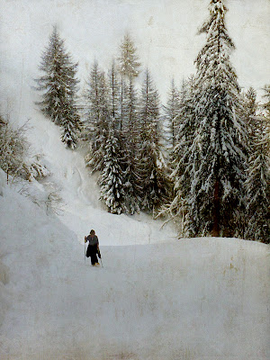Ah la la, ce sapin me désespère. Je me suis concentrée sur la dame qui grimpait péniblement la pente sans voir, je l’avoue, que je décapitais ce malheureux épicéa. Pas de recette vraiment magique pour ce post traitement. Le temps était couvert, le ciel blanc. J’ai ajouté deux textures successives (les mêmes) en mode « lumière tamisée » puis « densité linéaire+ ». Un petit coup de désaturation et voila!