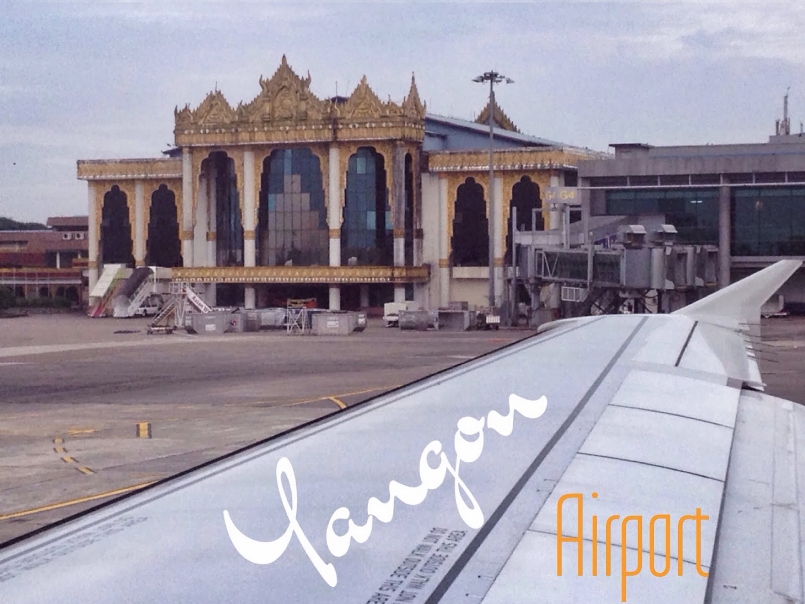 Depuis de nombreuses minutes, j’ai le front collé au hublot. Mes yeux scannent avidement le paysage qui déroule ses ondulations verdoyantes à perte de vue, à peine ponctuées ça et là d’habitations en bois et de l’éclat doré d’un stupa. Quelques cours d’eau inscrivent sur ces pages paysagères leurs boucles brunâtres comme les courbes arrondies d’une écriture sacrée. Après 12 heures confinés dans le ventre d’acier d’un A380 et une brève  escale dans l’aéroport tentaculaire de Singapour, nous remontons en 2 heures et demi vers le nord en direction de notre destination finale. Il est 9 heures du matin, nous voyageons depuis 24 heures, lordque l’avion se pose enfin à l’aéroport de Mingaladon.